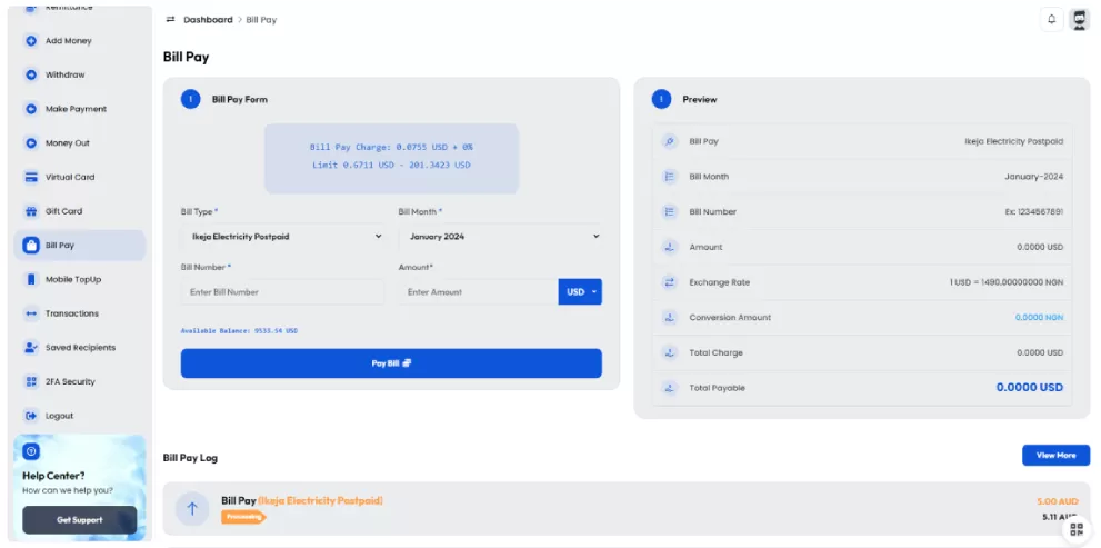 Some bill payments may include a small processing fee, which will be displayed before you confirm the payment.